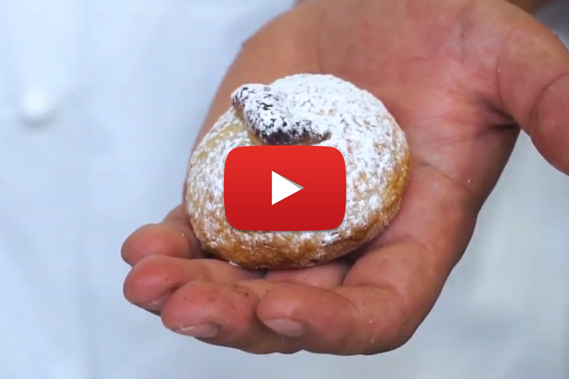 Bake at 180 degrees, and once baked, decorate your Panzerotto with icing sugar.